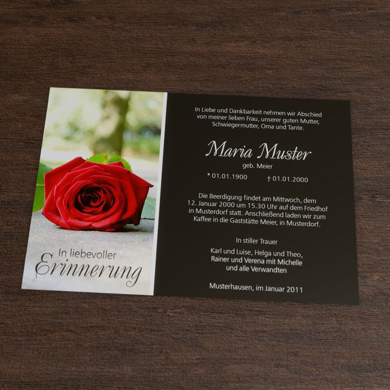 Diese Trauerkarte ist 2-seitig und wird individuell für Sie in Farbe gedruckt.