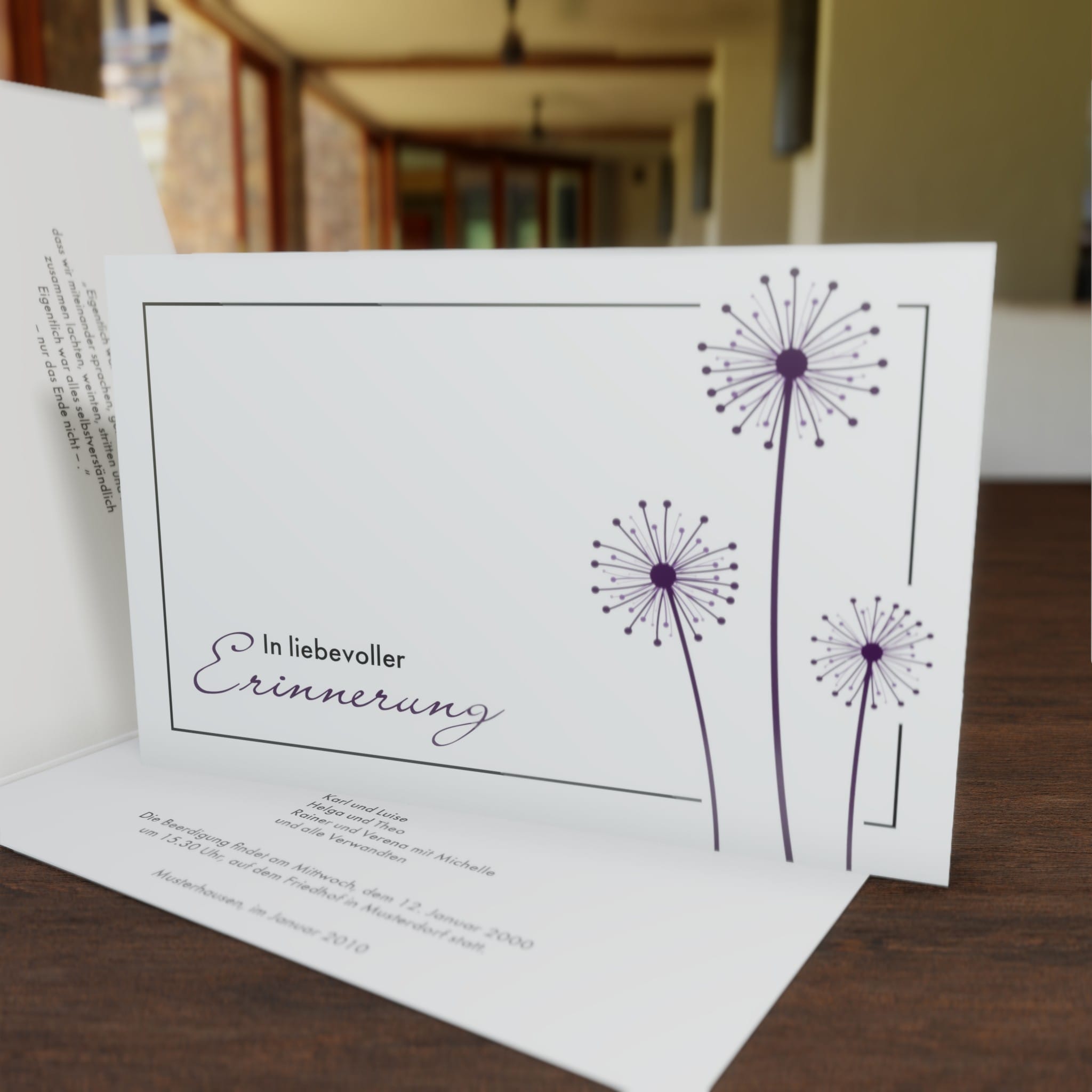 Informieren Sie nahestehende Verwandte und Freunde mit dieser dezenten Trauer Klappkarte „Abstrakte Blume“ über den eingetretenen Trauerfall und den Termin für die Trauerfeier.