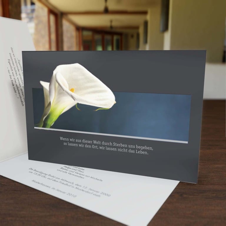 Informieren Sie nahestehende Verwandte und Freunde mit dieser dezenten Trauer Klappkarte „Lilie modern“ über den eingetretenen Trauerfall und den Termin für die Trauerfeier.